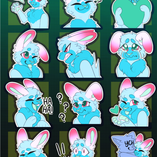 Digital Bunny Furry Emote/Sticker Bases (Pack 6)