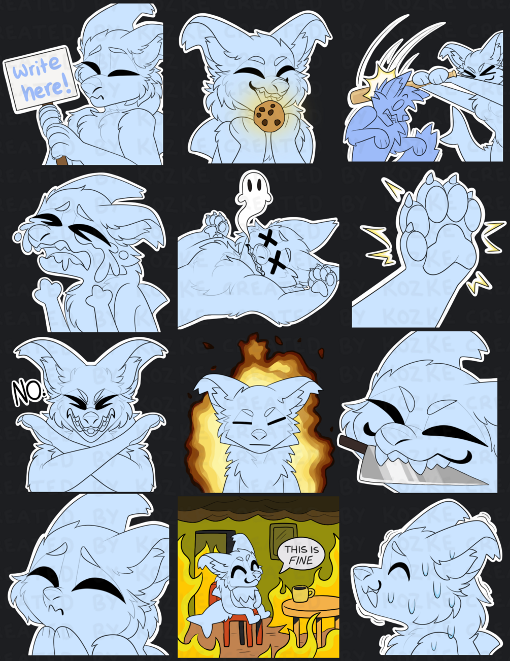 Each sticker is 512x512 px- can be imported into discord/telegram/whatsapp/etc