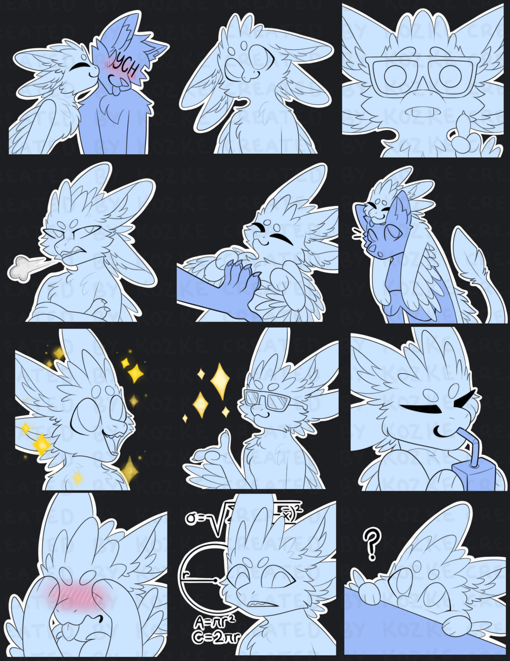 Each sticker is 512x512 px- can be imported into discord/telegram/whatsapp/etc