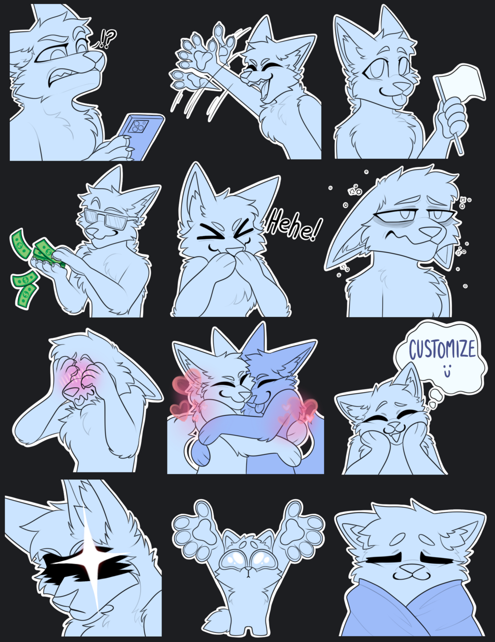 Each sticker is 512x512 px- can be imported into discord/telegram/whatsapp/etc