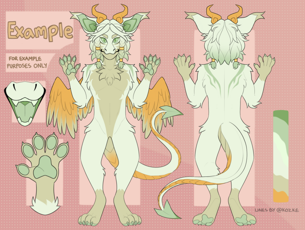 Furry Dragon (Scaly and Fluffy!) Symmetrical Reference Sheet Base