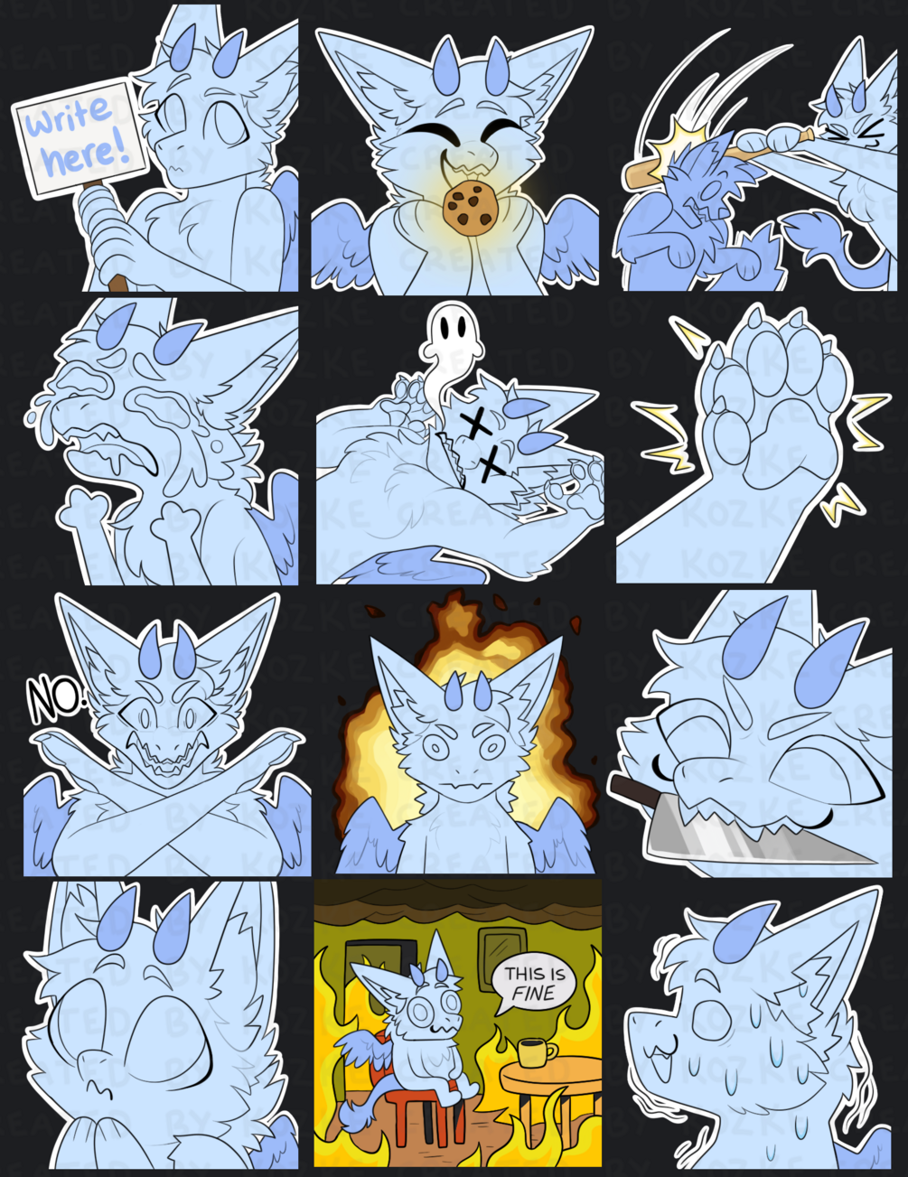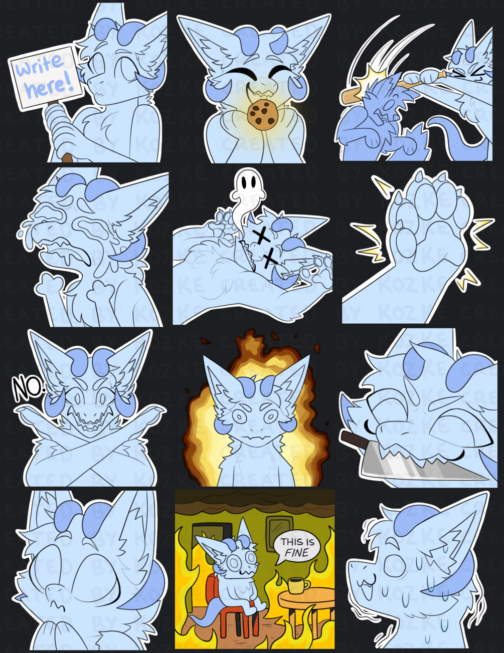 Each sticker is 512x512 px- can be imported into discord/telegram/whatsapp/etc