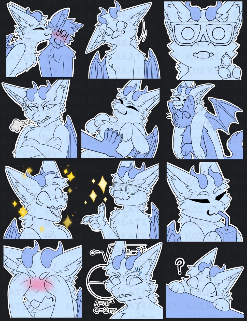Each sticker is 512x512 px- can be imported into discord/telegram/whatsapp/etc