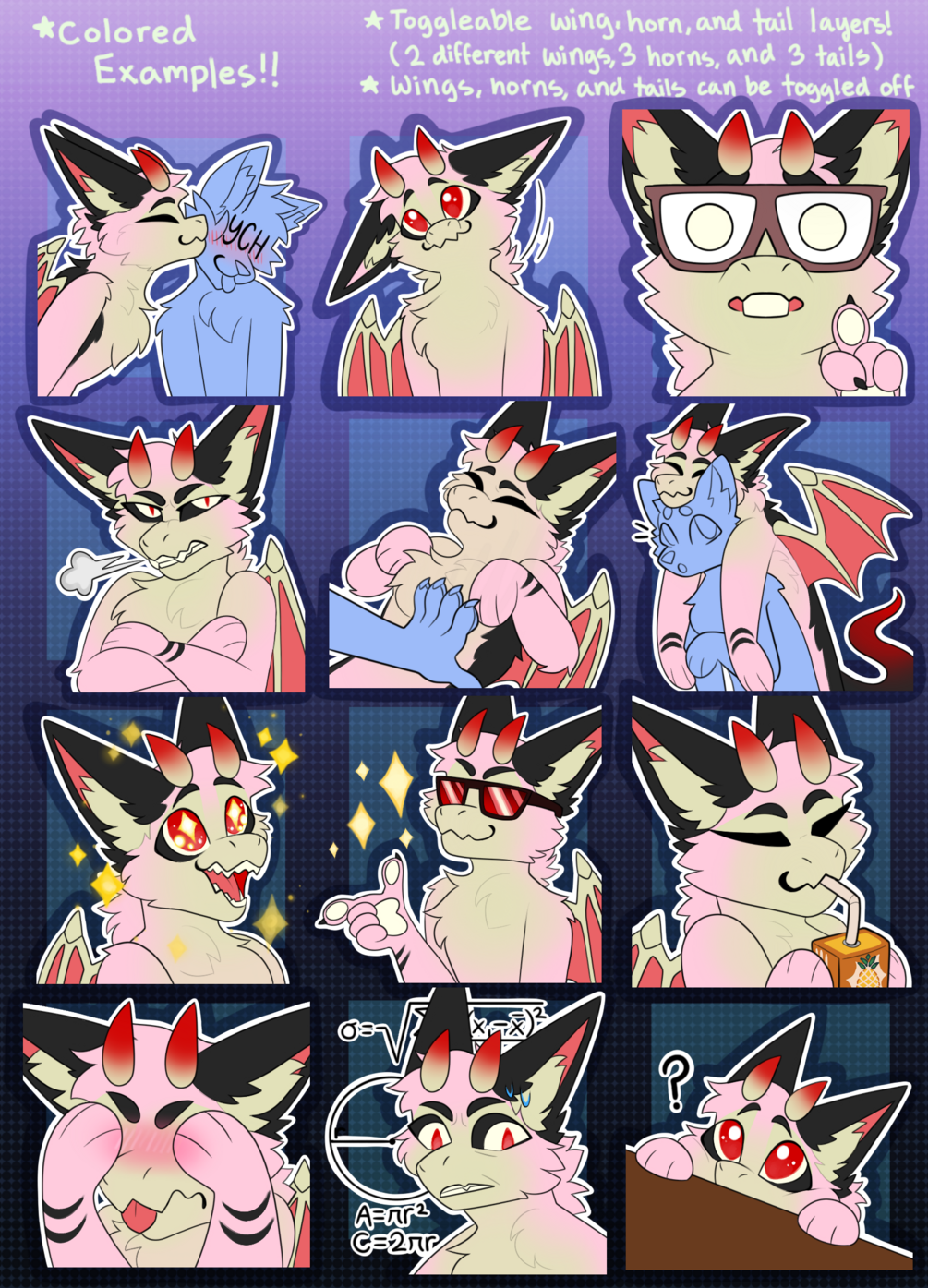 All horn, tail, and wing options are toggleable! :) Easy to edit and customize