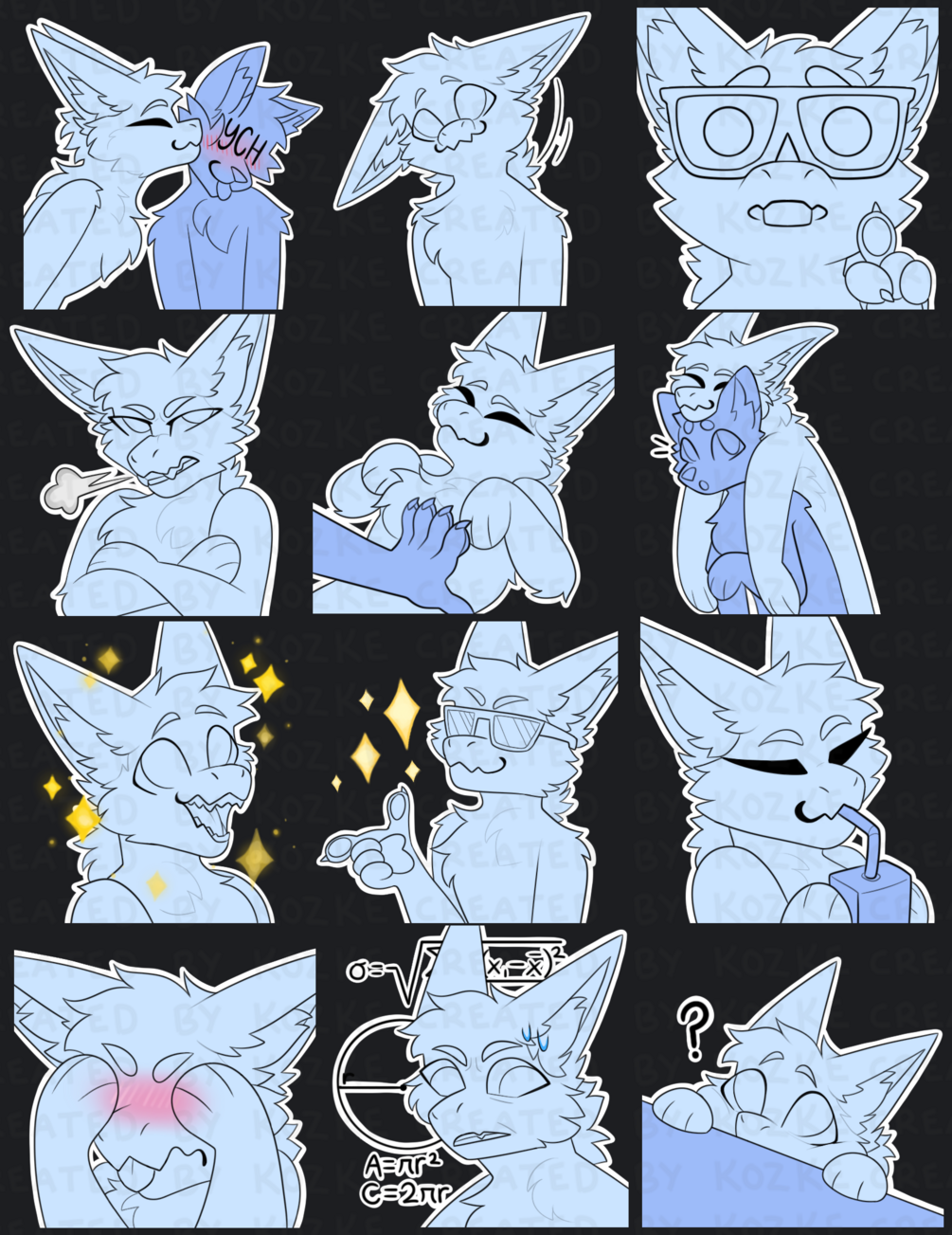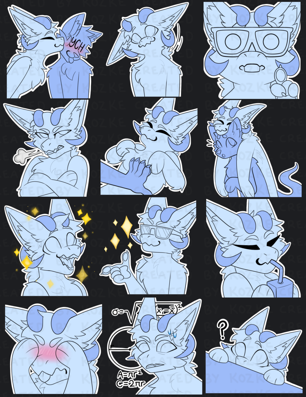 Each sticker is 512x512 px- can be imported into discord/telegram/whatsapp/etc