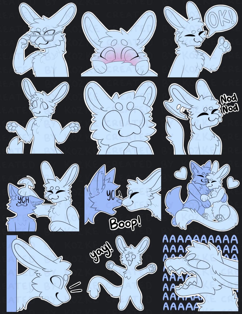 Each sticker is 512x512 px- can be imported into discord/telegram/whatsapp/etc