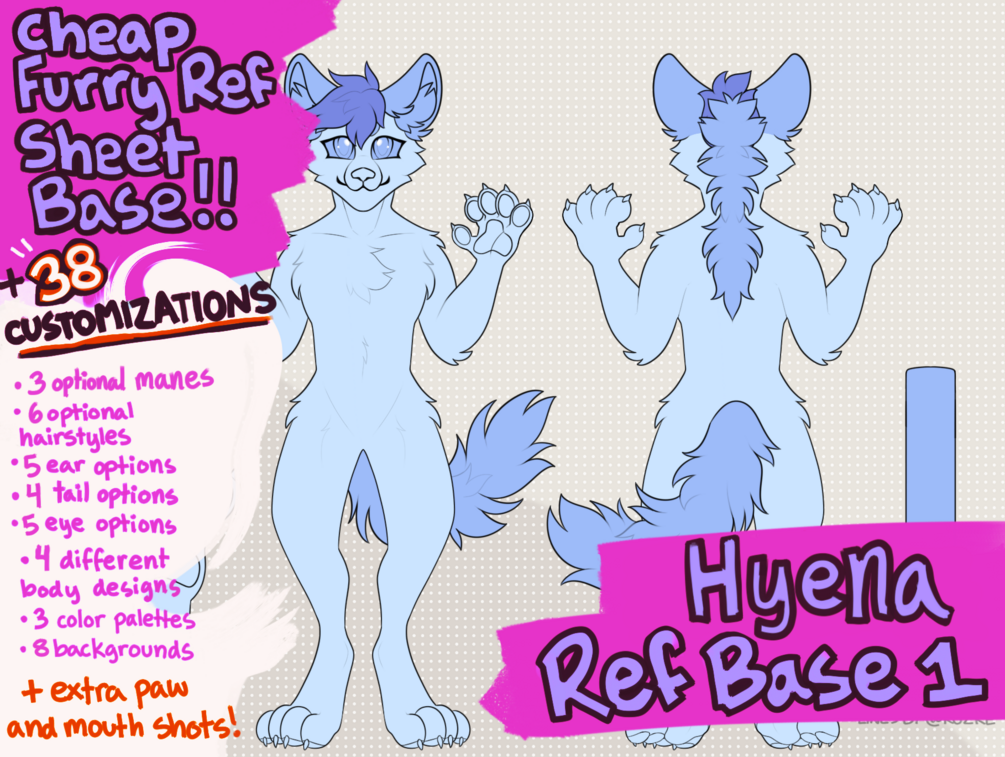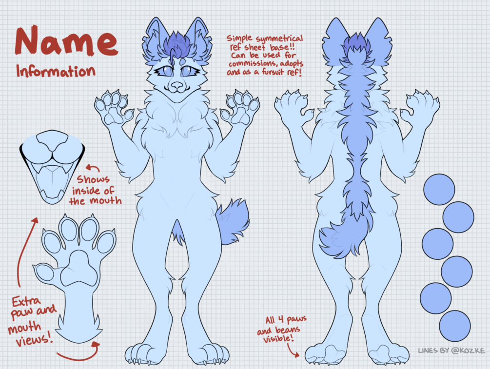 Simple symmetrical front/back reference sheet base!! Work great as a reference for creating fursuits! Includes a bonus paw and mouth view as well.