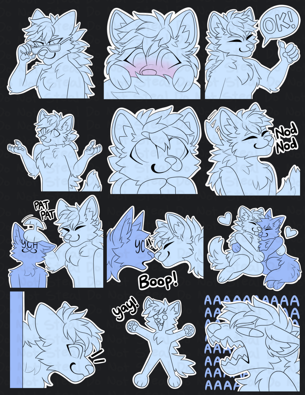 Each sticker is 512x512 px- can be imported into discord/telegram/whatsapp/etc