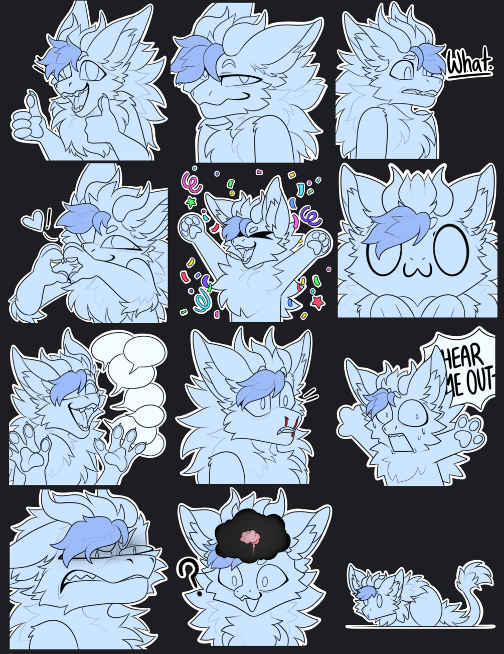 Each sticker is 512x512 px- can be imported into discord/telegram/whatsapp/etc