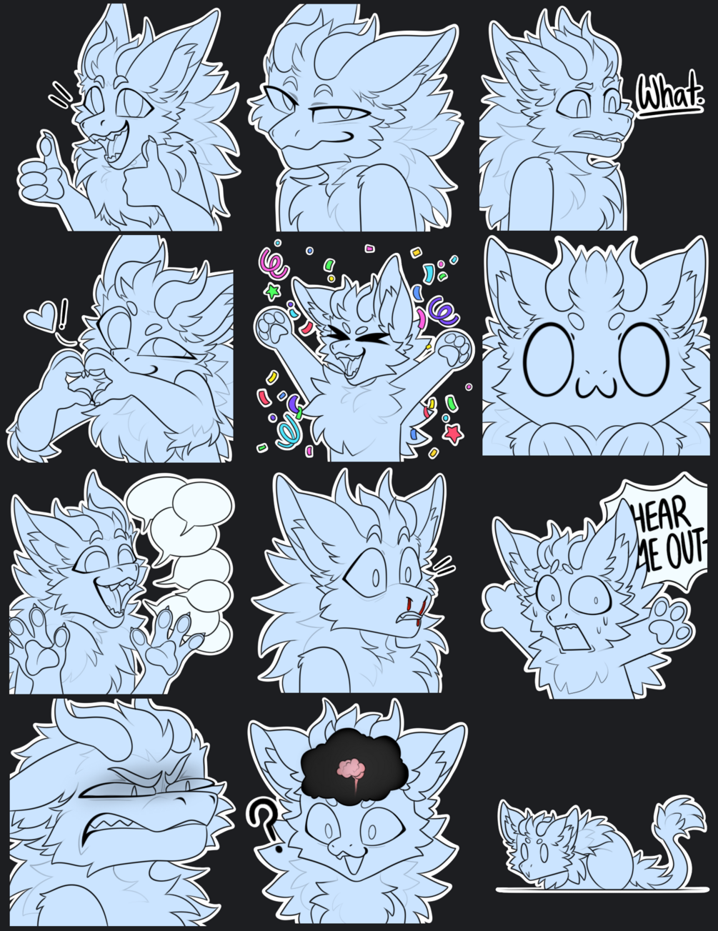 Each sticker is 512x512 px- can be imported into discord/telegram/whatsapp/etc