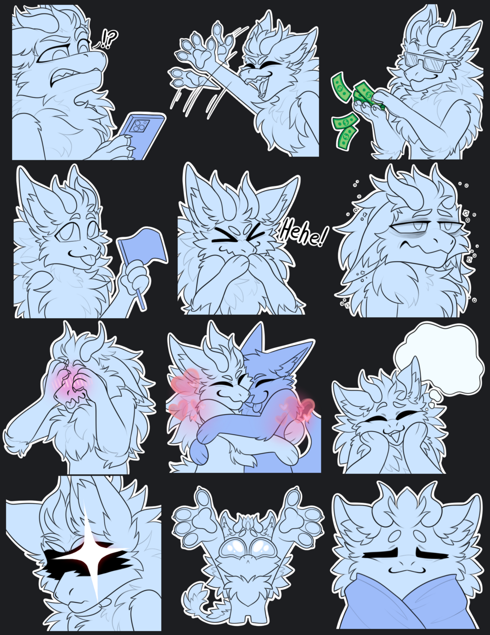 Each sticker is 512x512 px- can be imported into discord/telegram/whatsapp/etc