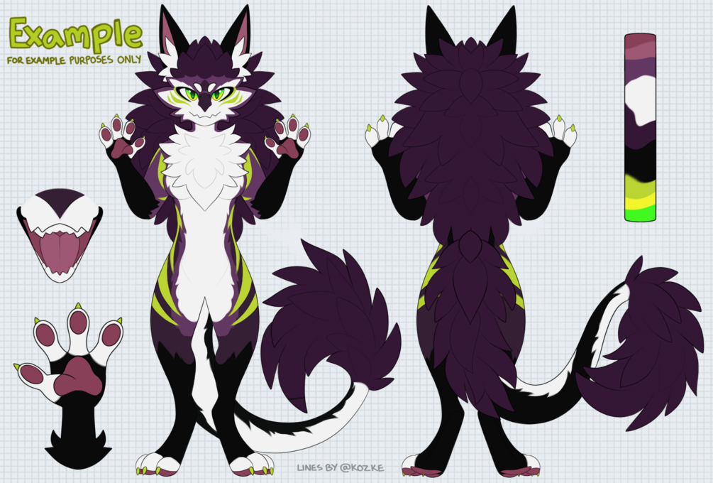 Simple symmetrical front/back reference sheet base!! Work great as a reference for creating fursuits! Includes a bonus paw and mouth view as well.