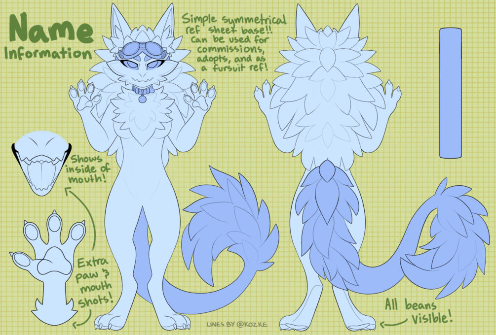 Simple symmetrical front/back reference sheet base!! Work great as a reference for creating fursuits! Includes a bonus paw and mouth view as well.