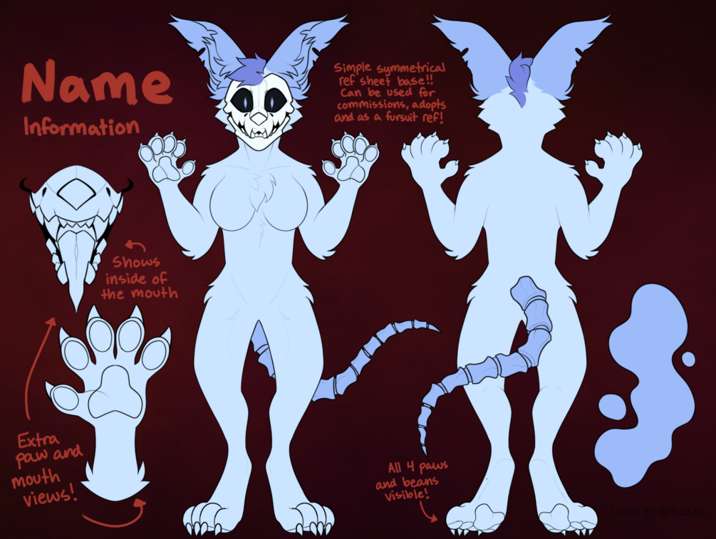 Simple symmetrical front/back reference sheet base!! Work great as a reference for creating fursuits! Includes a bonus paw and mouth view as well.