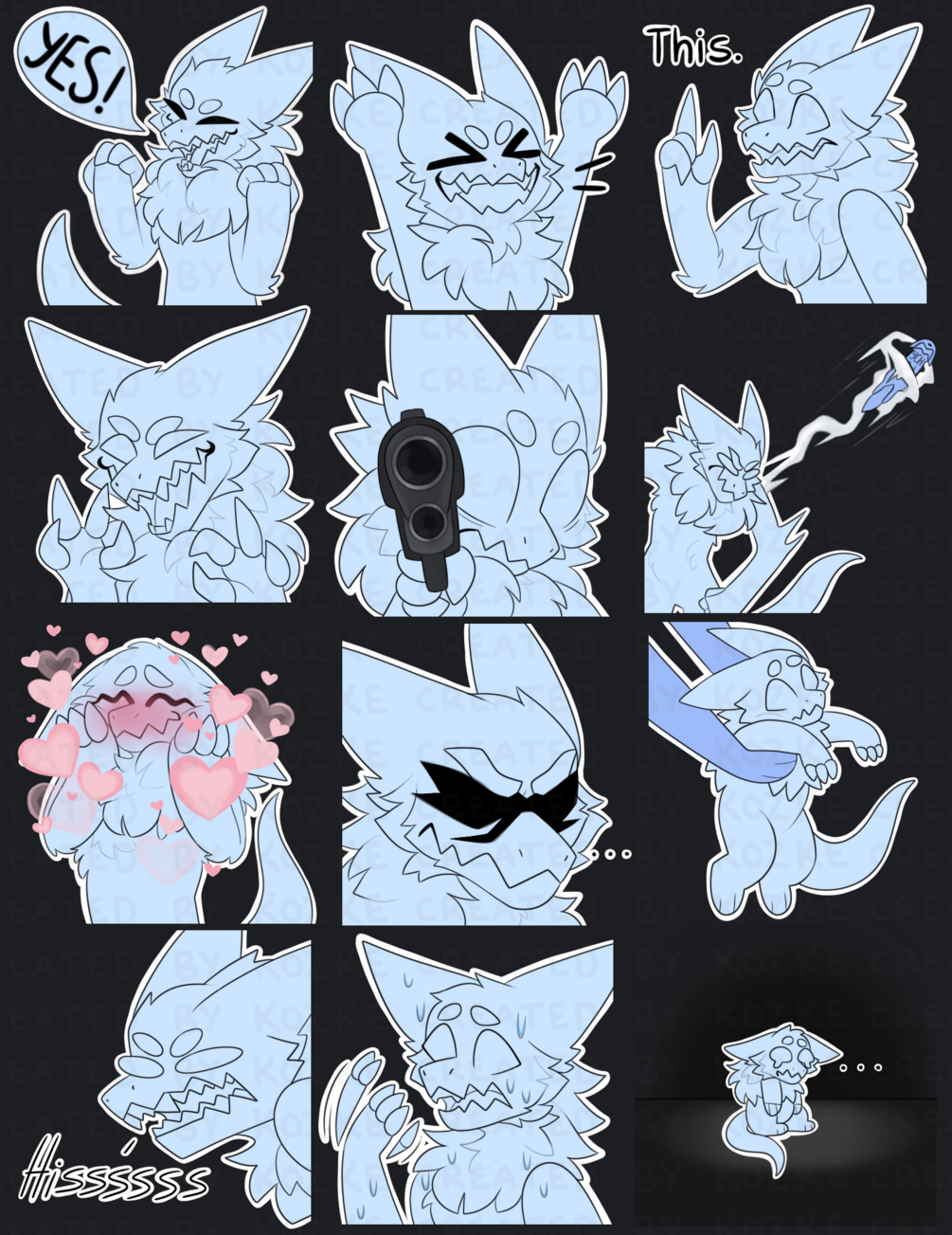 Each sticker is 512x512 px- can be imported into discord/telegram/whatsapp/etc