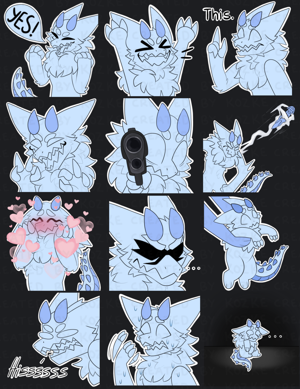 Each sticker is 512x512 px- can be imported into discord/telegram/whatsapp/etc