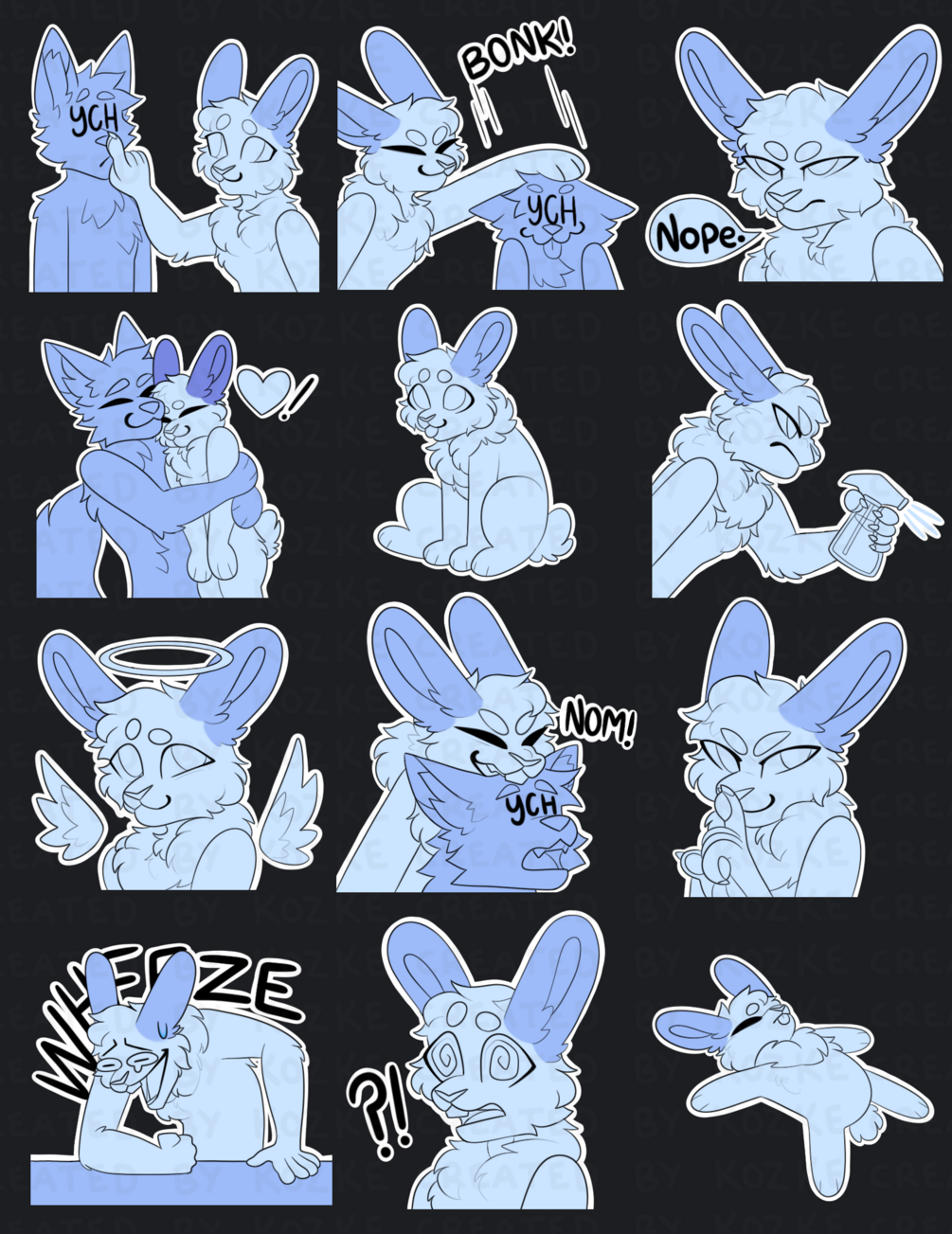 Digital Bunny Furry Emote/Sticker Bases (Pack 3)